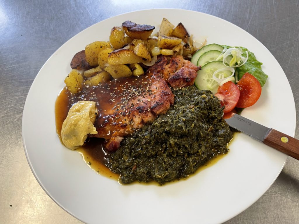 - Frischer GrünkohlFrischer Grünkohl mit Kaßlersteak oder Bratwurst und Röstkartoffeln.